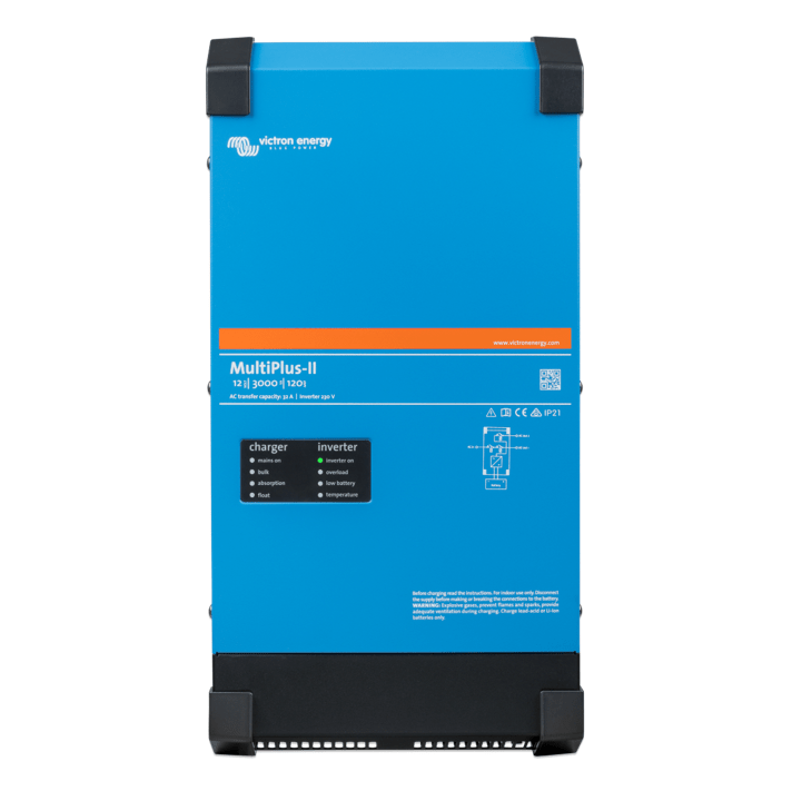 De Victron Multiplus 4000W is de krachtpatser onder de omvormers. Perfect voor zware apparaten zoals kookplaten. Jij maakt je geen zorgen over piekbelastingen of vermogenstekort – volledige vrijheid gegarandeerd!