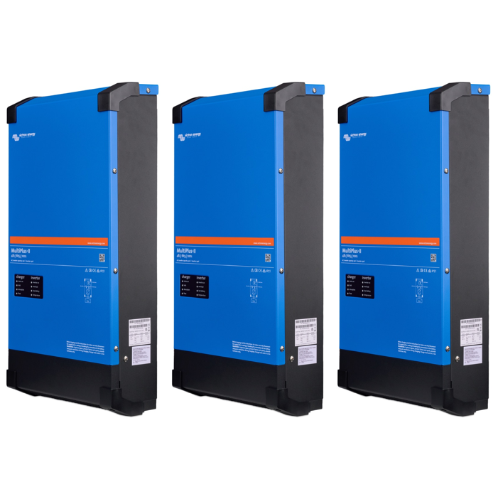 Met 3× MultiPlus-II 4.5 kun je ongeveer 12 kW uit de accu leveren. Dat is voor de meeste woningen ruim voldoende. Alleen wanneer je tijdens stroomuitval meerdere zeer zware verbruikers tegelijk wilt blijven gebruiken, kies je beter voor 3× MultiPlus-II 6.5.